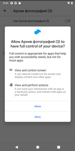 The malware, as previously noted, exploits both default SMS privileges and Accessibility Services. Upon installation, it first prompts the victim to grant Default SMS permission. Once this is granted, the malware then directs the victim to enable the Accessibility Service permission (Fig. 3).