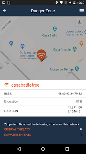 Everyday, Zimperium detects six hundred millions threat events. We process the most relevant network attacks to create what we call the Danger Zone – a real time map that can warn and prevent you from connecting to malicious WiFi networks.