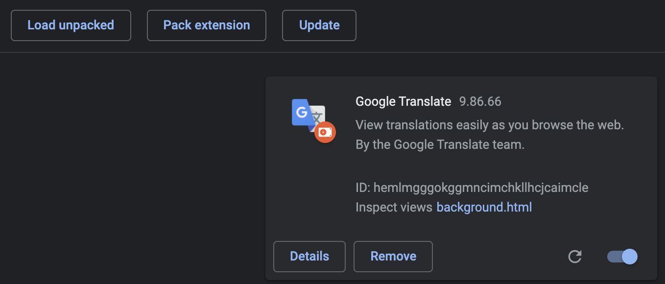 One example of spyware is a Fake Google Translate extension ( identifier:hemlmgggokggmncimchkllhcjcaimcle) designed to steal a victim’s Facebook data. The name and icon of this extension are replaced with that of Google Translate to fool victims into believing that this is a legitimate extension (Figure 7). But analysis of the source code reveals its true intention as spyware.