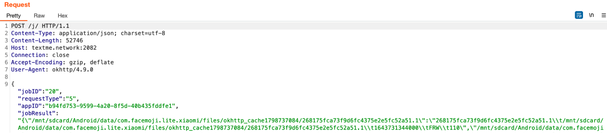 Next it sends various requests to the C&C server with different jobIDs and data, which are the following: