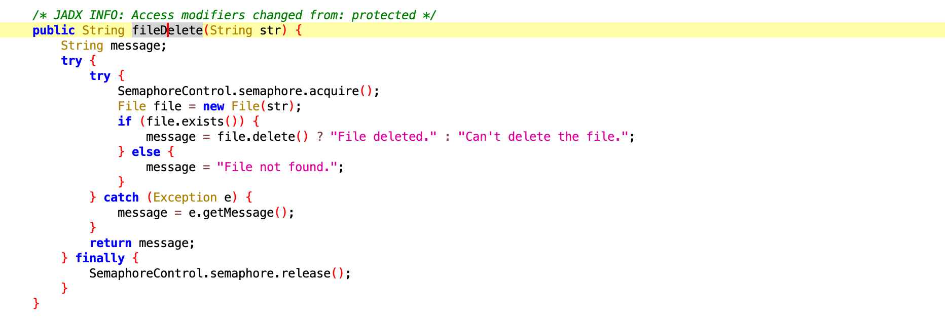 - Delete permission – Adds or deletes permission for this malware in a sharedpreferences list that it keeps to track those permissions.