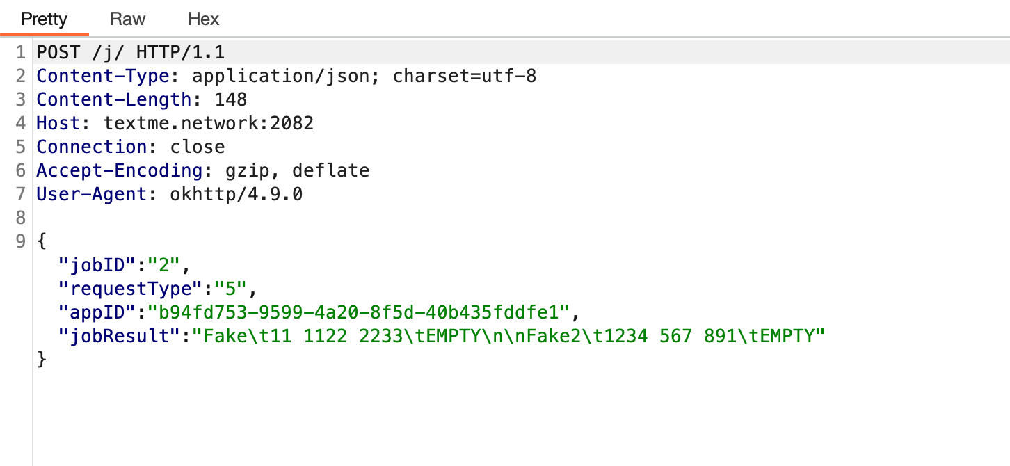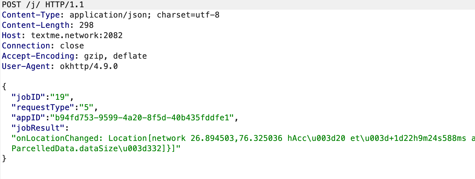 The response consists of a json with “jobType” variable. If jobType is -1 the app exits. If the app does not exit, it then performs various other tasks based on the value of jobType.